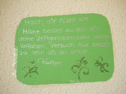 Auf dem SMV-Seminar hat die gesamte SMV liebevoll bunte Zettel in Herzchen, Sternchen, Blümchenform und vieles mehr ausgeschnitten. Mit bunten Plakate und berühmten und schönen Zitaten wurde das Schulhaus geschmückt.