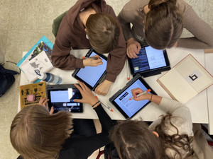 Derzeit sind insgesamt 236 Schülerinnen der 9er und 10er Klassen sowie der Kursstufe mit iPads ausgestattet. Für Lehrkräfte stehen außerdem 6 Koffer mit insgesamt 50 iPads zur Verfügung, die für den Unterricht ausgeliehen werden können und bei Bedarf in iPads für die Fernlernphase umgewandelt werden können. Zusätzlich stehen derzeit 115 weitere iPads zur Verfügung, die von Schülerinnen für die Fernlernphase ausgeliehen werden können. Wir legen großen Wert auf die Vermittlung der 10 Gebote der digitalen Ethik und es gibt klare Regeln für den Gebruch der iPads im Unterricht.