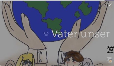 Die Klassen 6a und 6b haben im Religionsunterricht einen kleinen Film zum "Vater unser" produziert. In Französisch, Latein, Englisch, Deutsch und Ukrainisch sprechen die Schülerinnen das Gebet. Dabei geht es nicht um die perfekte Aussprache, sondern darum, ein Gefühl zu bekommen, dass dieses Grund-Gebet in aller Welt bei den Christen bekannt ist und somit Christen verschiedener Nationen verbindet.