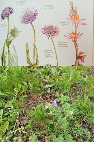 In einer kleinen Gruppe waren wir auf einer großen Wiese neben dem Universitätscampus. Dort habe wir mit Hilfe von Bestimmungsbüchern Wiesenpflanzen bestimmt und protokolliert. In einem kleinen Theorieteil danach haben wir unsere Protokolle ausgewertet und herausgefunden, dass es sich bei der Wiese um eine Magerwiese handelte. Insgesamt haben wir 30 verschiedene Pflanzen entdeckt von A wie Ampfer bis W wie Wiesen-Witwenblume.