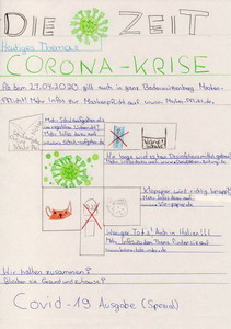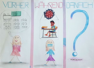 Die Kinder der Klasse 5a und 5d haben sich – in Anlehnung an ein Kinder-Kunst-Mitmach-Projekt der Wochenzeitung DIE ZEIT – bildnerisch individuell mit der Corona-Zeit auseinandergesetzt; damit wie sie selbst diese ungewöhnlichen Wochen auf ihre eigene Weise erlebt und wahrgenommen haben. In ihren Bildern geben Sie uns einen kleinen Einblick. Herzlichen Dank dafür.